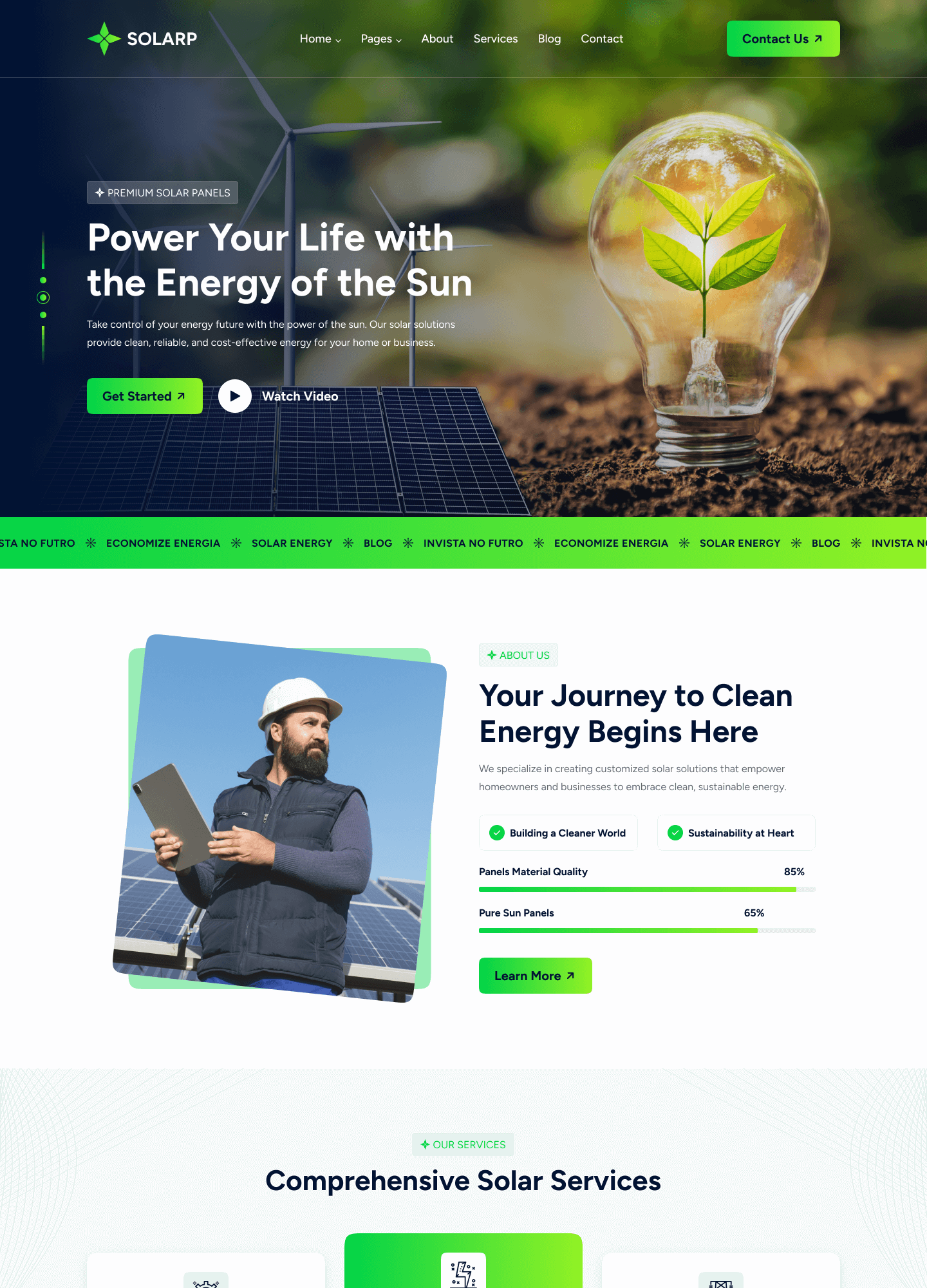 At Solarp we specialize in delivering tailored solar energy solutions designed to meet your unique needs. From initial consultation and system design to installation and maintenance, our team ensures a seamless experience every step of the way. Whether you're looking to power your home, business.